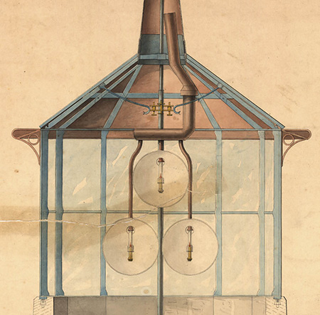 optical apparatus). The drawing shows the lantern’s copper roof (called a